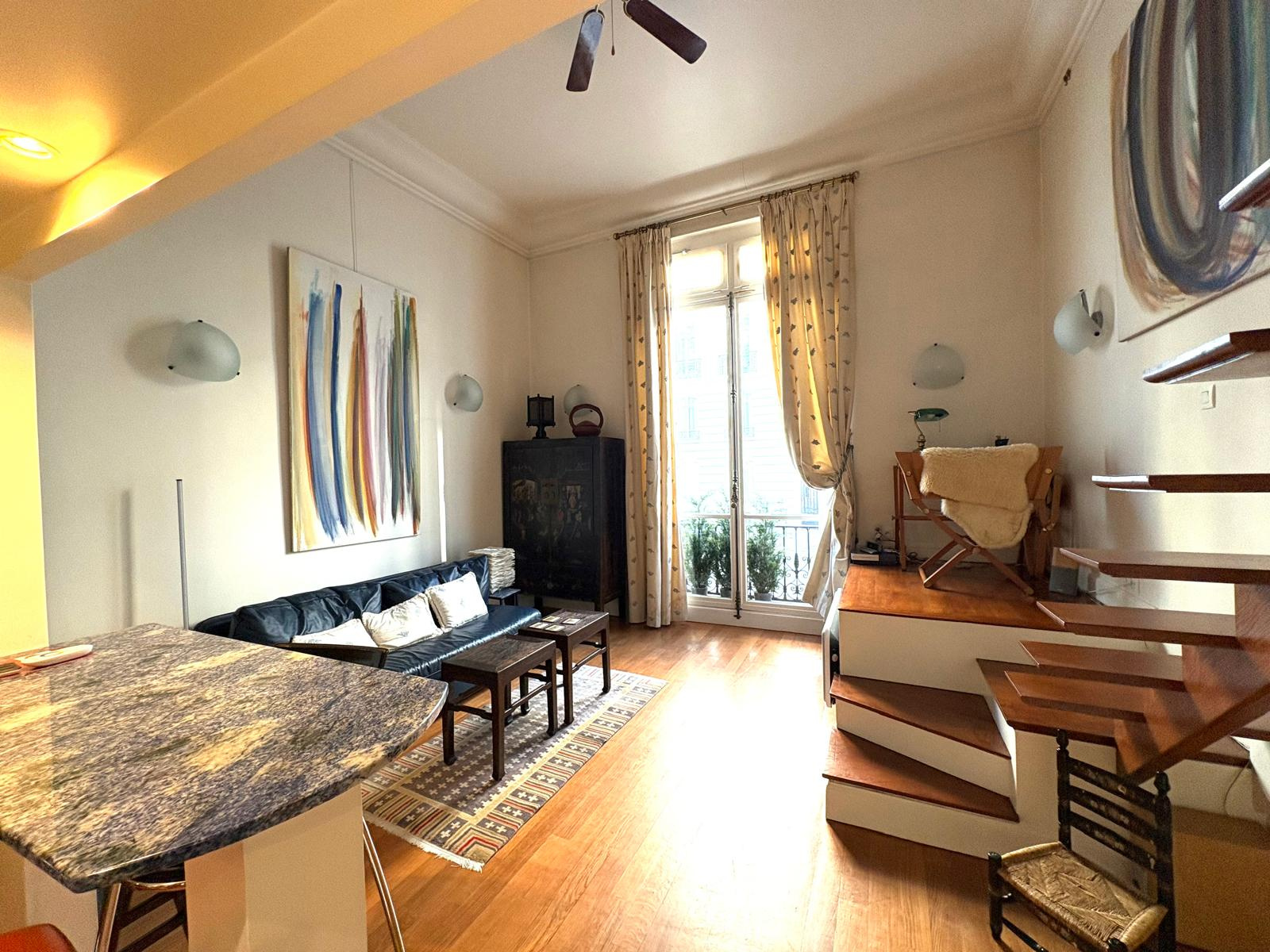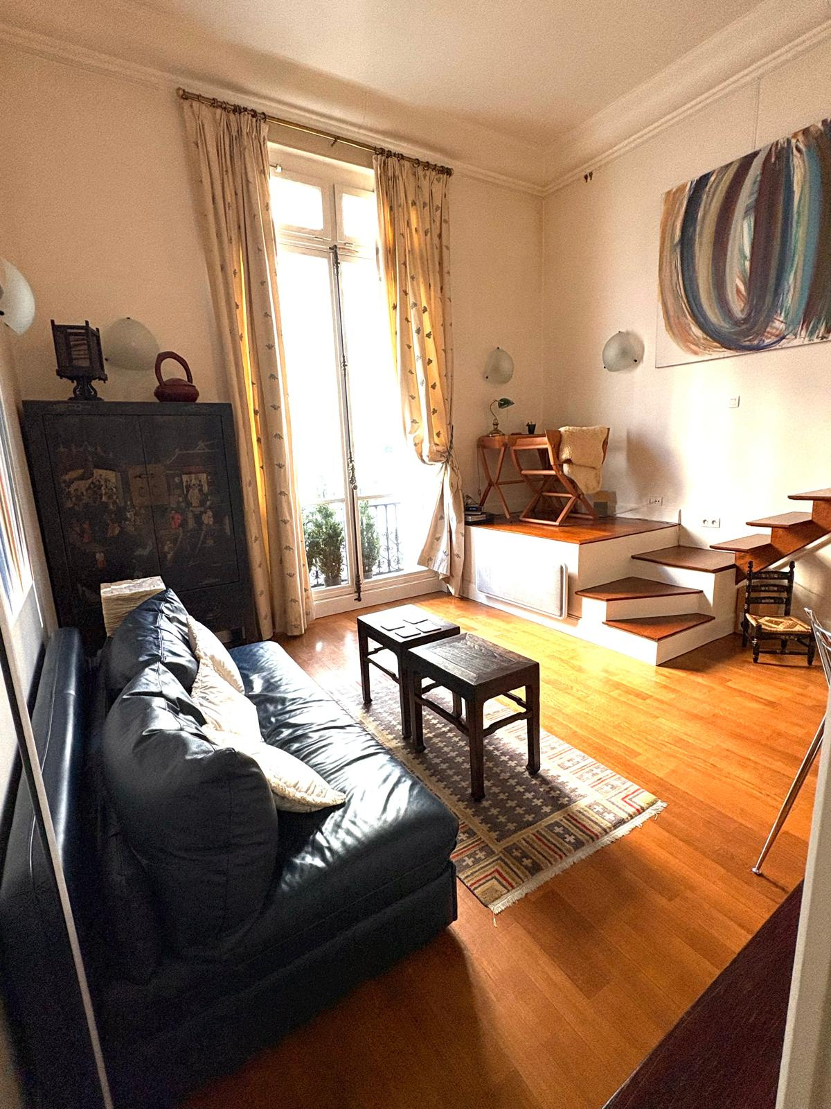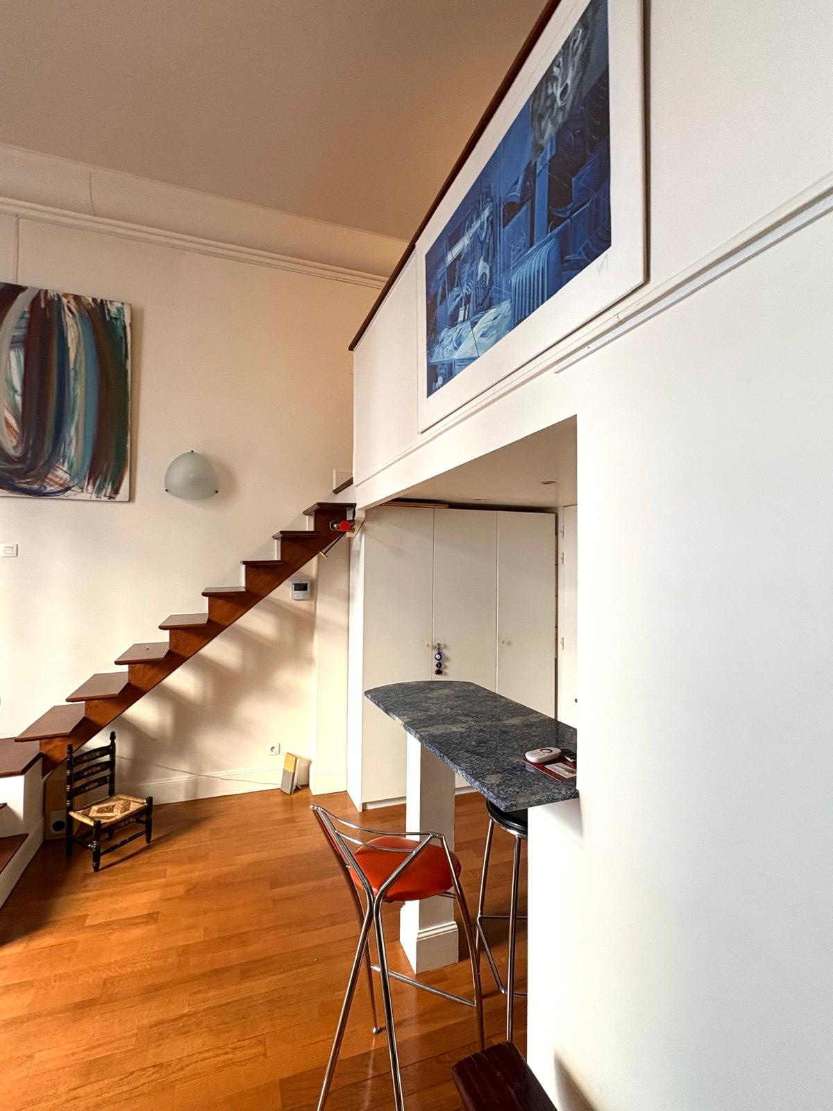 Studio - Atelier d'artiste, en RDC surelevé. 27,4 m2 Carrez (31,3 m2 au sol).