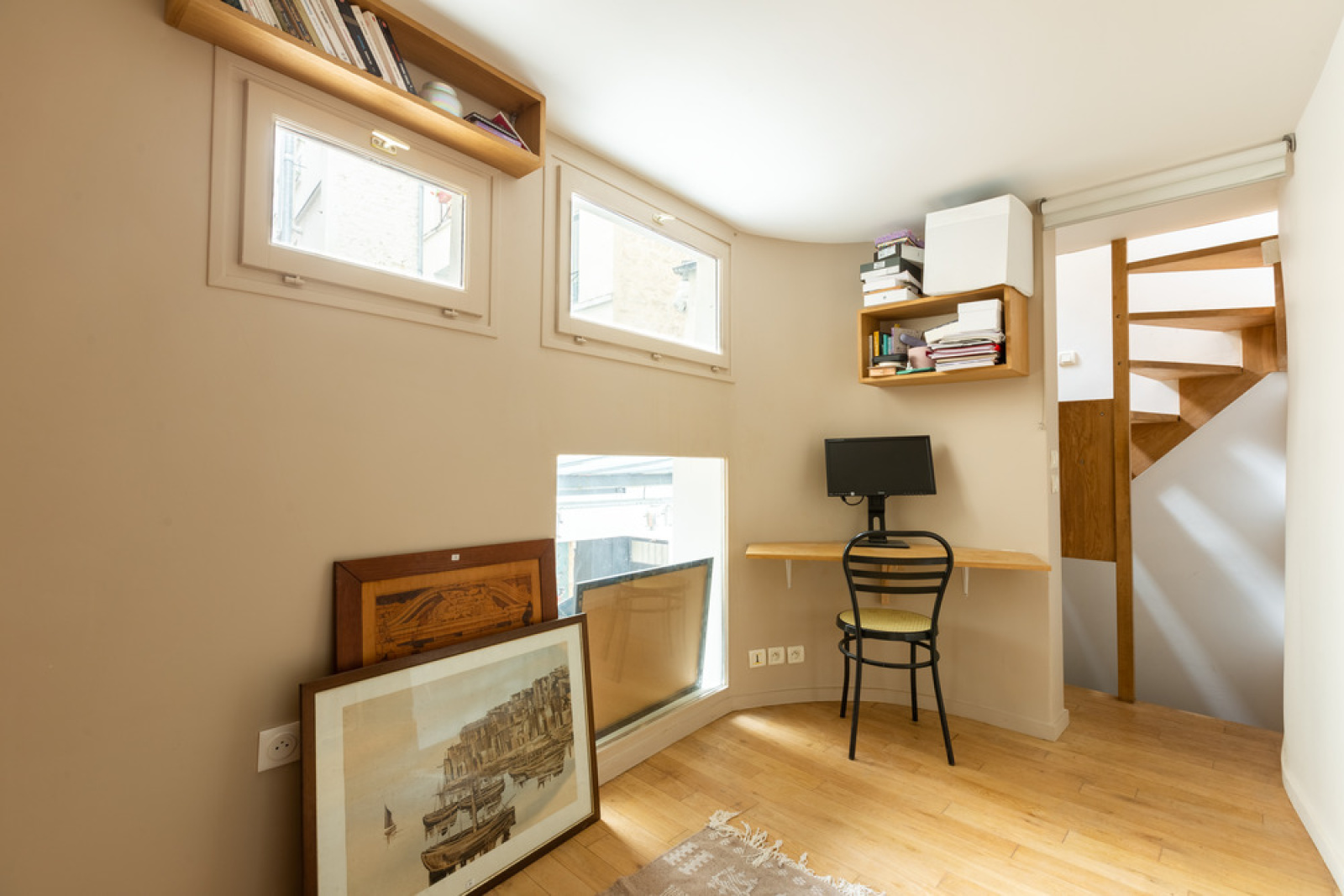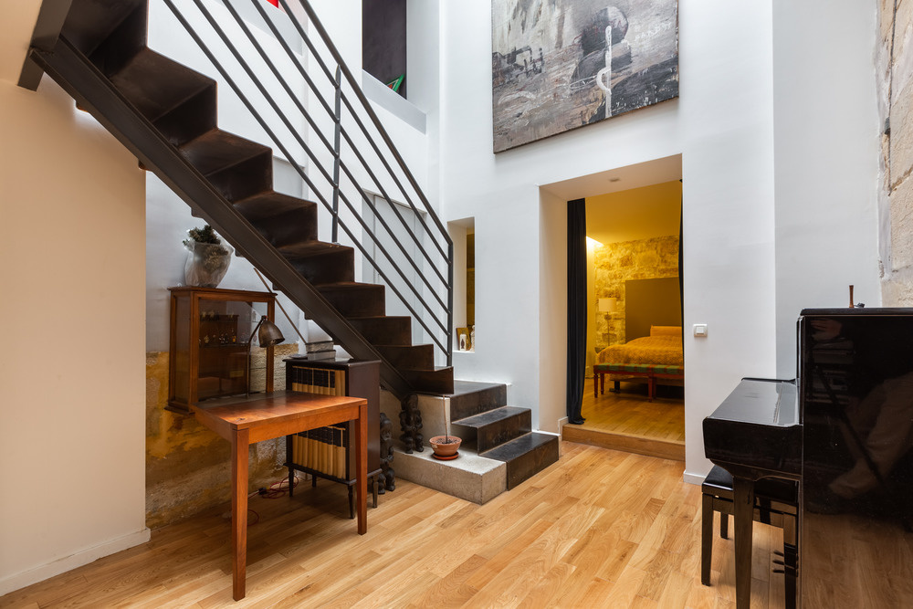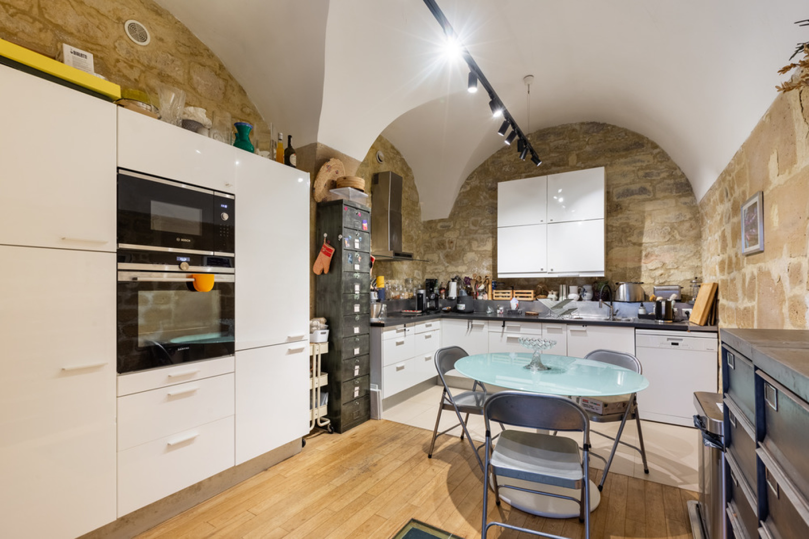 Rue Meslay - Beau volume atypique, métro TEMPLE (ou REPUBLIQUE) de 137,15 m2 (carrez).Grand charme des PIERRES APPARENTES, 5 pièces principales, se composant comme suit : - au rdc, séjour (lumière zénithale) avec coin bureau + salle à manger+ chambre principale avec salle de bain (baignoire et douche) + espace bibliothèque + belle cuisine dinatoire + 2 wc indépendants- au 1er niveau, 1 chambre ou bureau- au 2e niveau, 1 chambre ou bureau- à mi-étage une salle d'eau- une double cave (dont l'une est la buanderie)