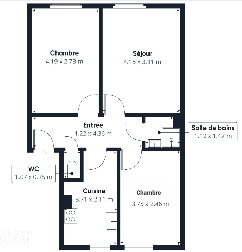3 pièces - 49 m²